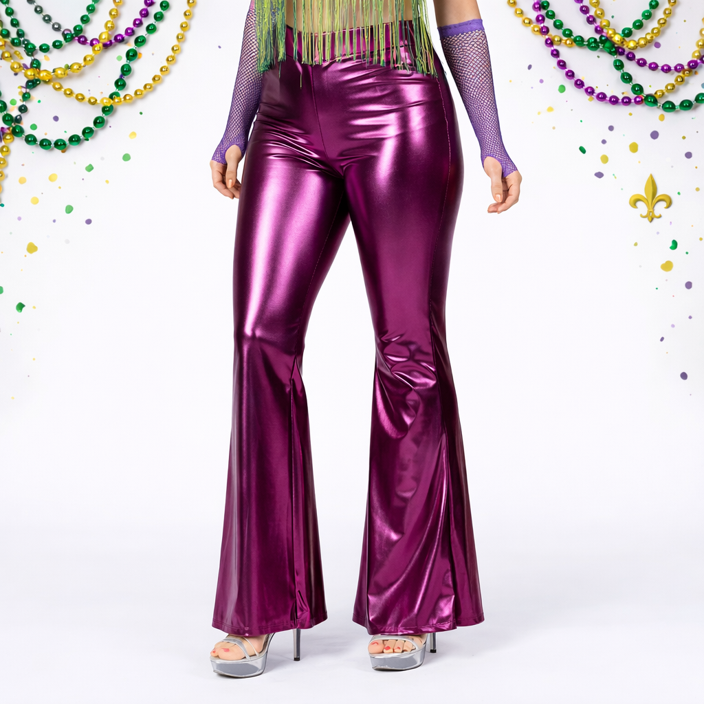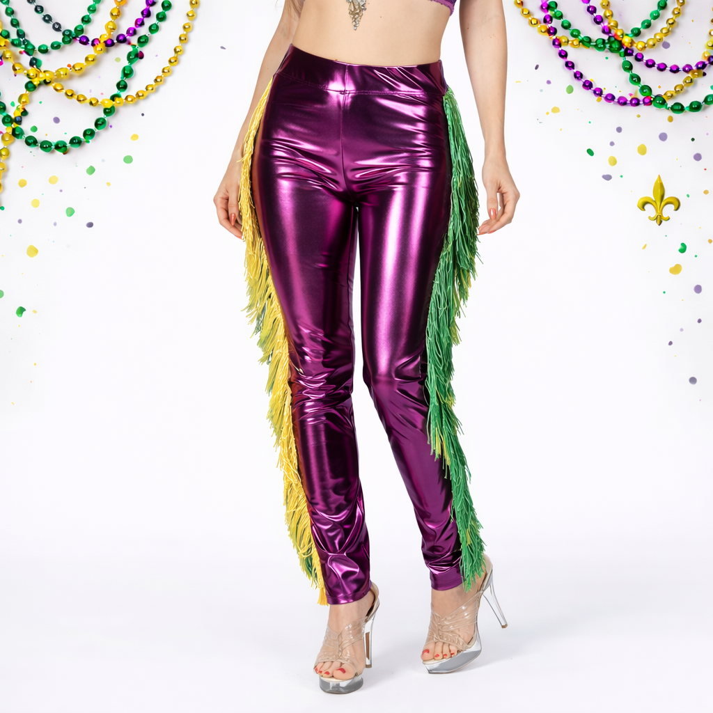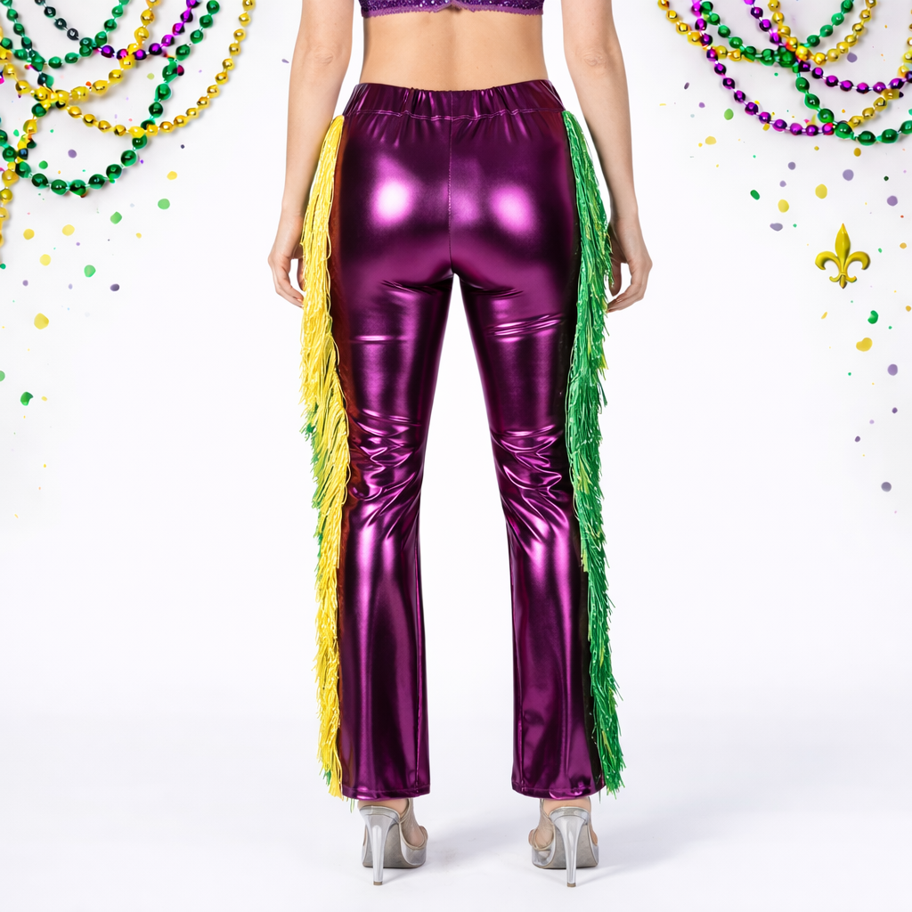 Women's Mardi Gras Metallic Purple Fringe Carnival Pants